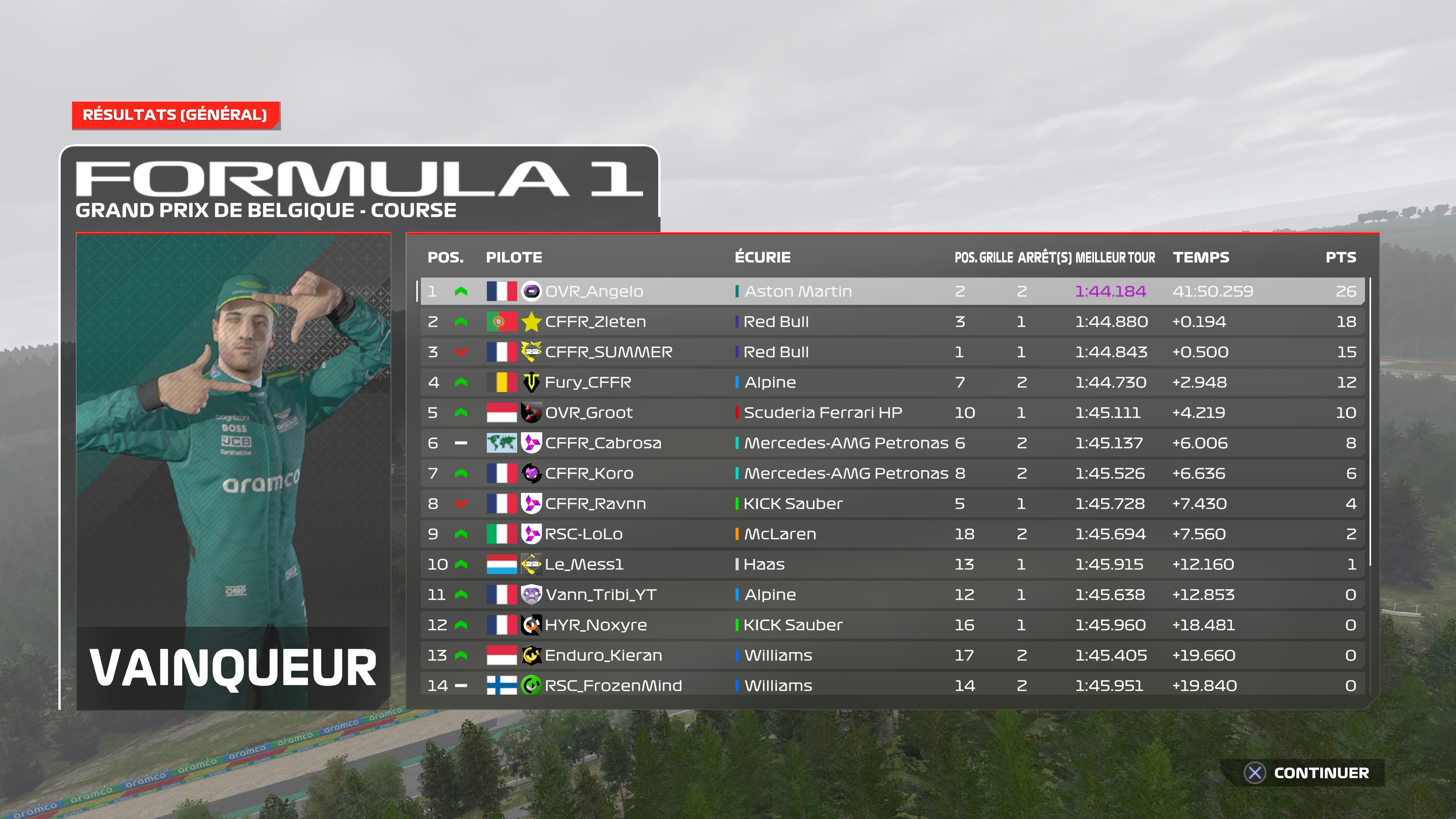 - Ce soir avait lieu le 2e GP de la Saison 12 de la CFFR avec le Groupe Élite où PapyLudo85 remplaçait un pilote titulaire au sein de l'écurie Aston Martin