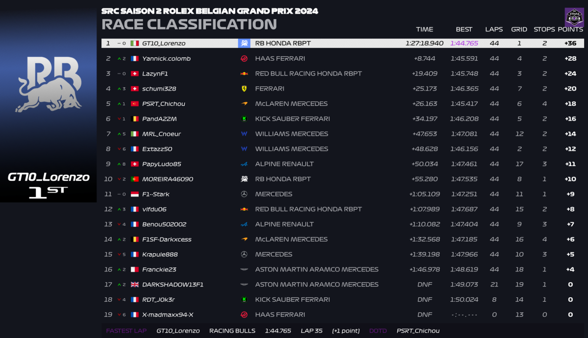 - Hier soir avait lieu la 14ème Manche de la Saison 2 de la SRC avec le mythique GP de SPA 🇧🇪