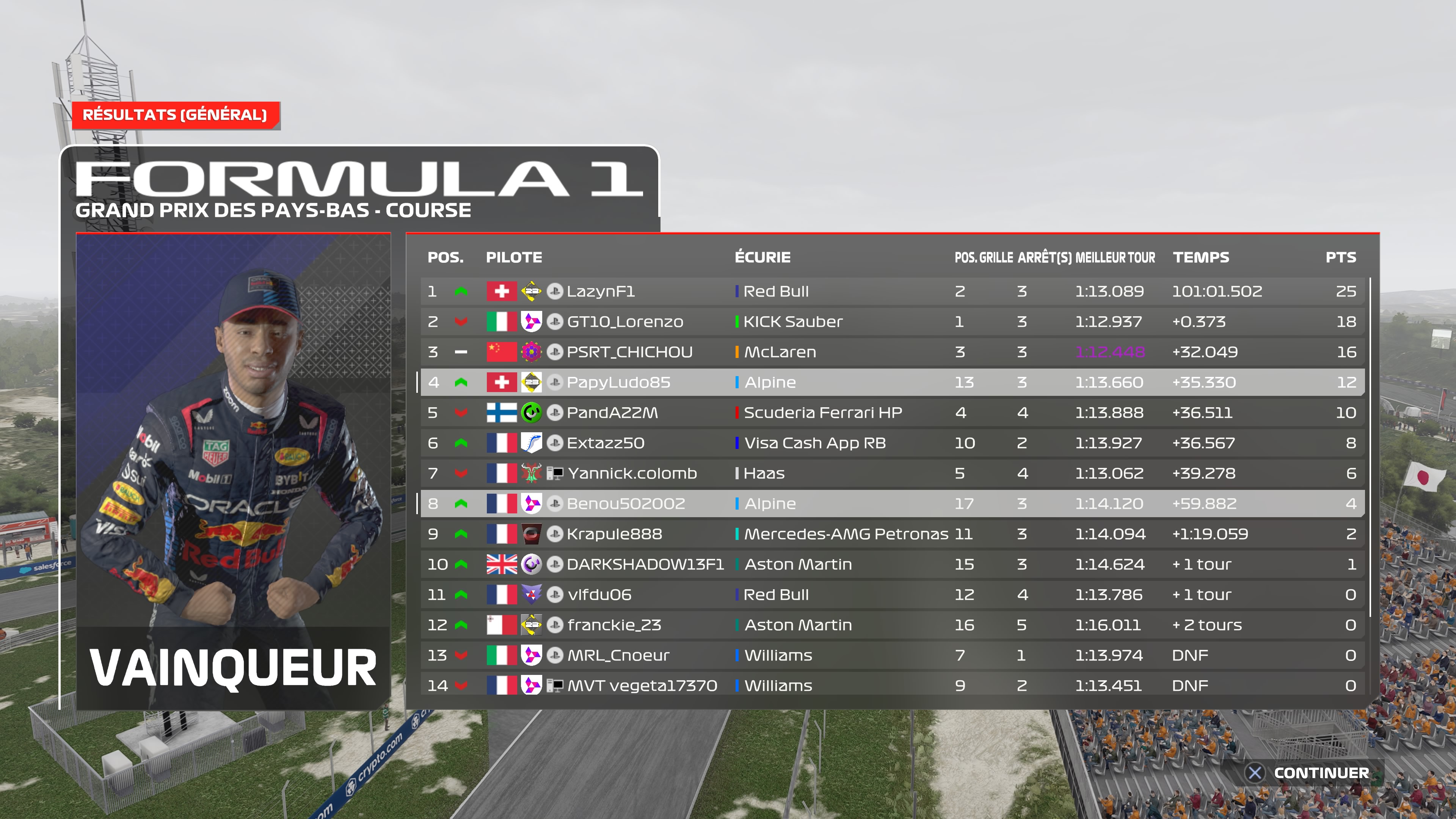 📖 "Une course où la pluie s'est invitée dans la 2ème moitié du GP et grosse performance de votre PapyLudo85 🇨🇭 qui signe son meilleur résultat sur cet Opus 🥳"