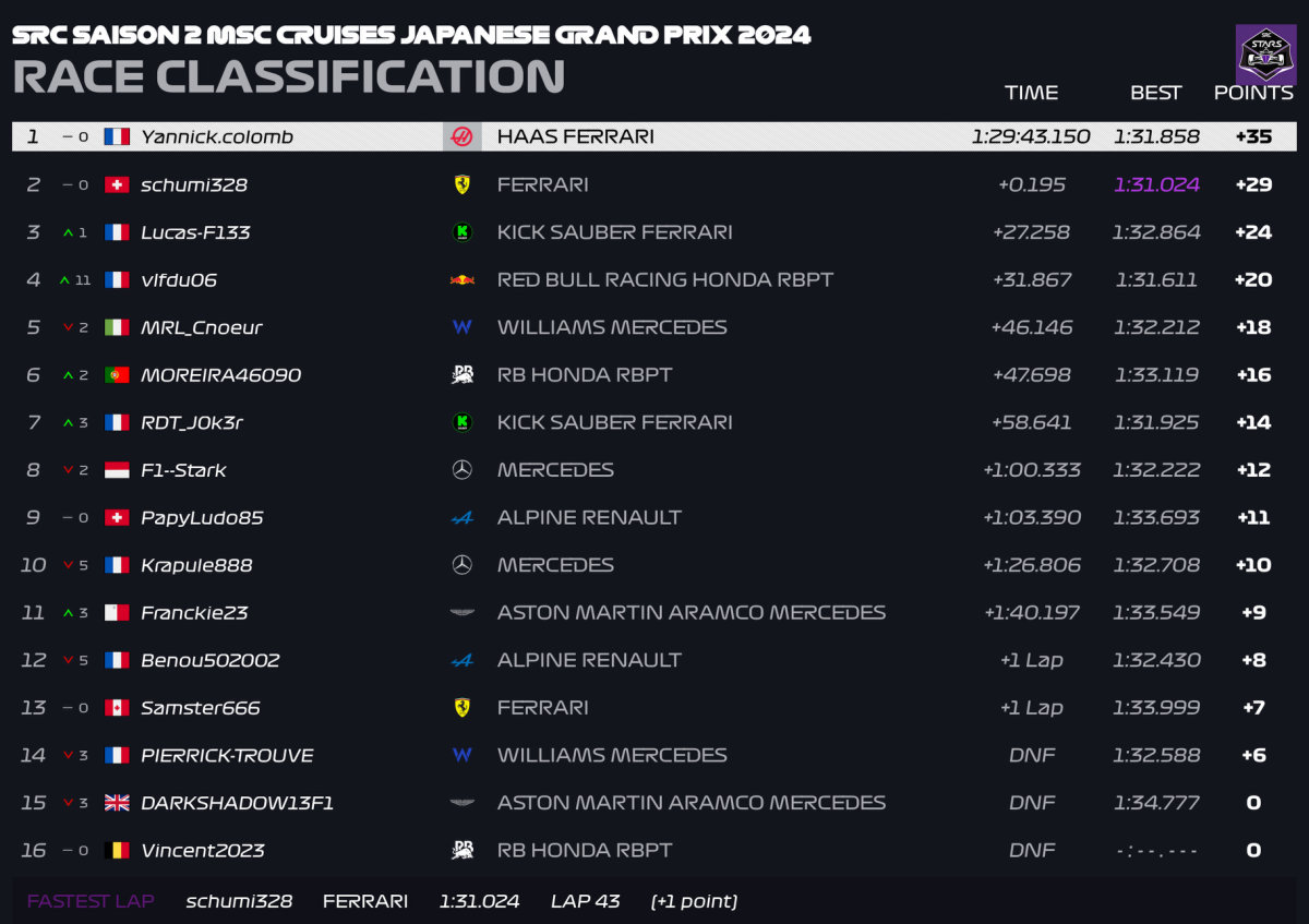 - Hier soir avait lieu la 4ème Manche de la Saison 2 de la SRC avec le GP de Suzuka 🇯🇵