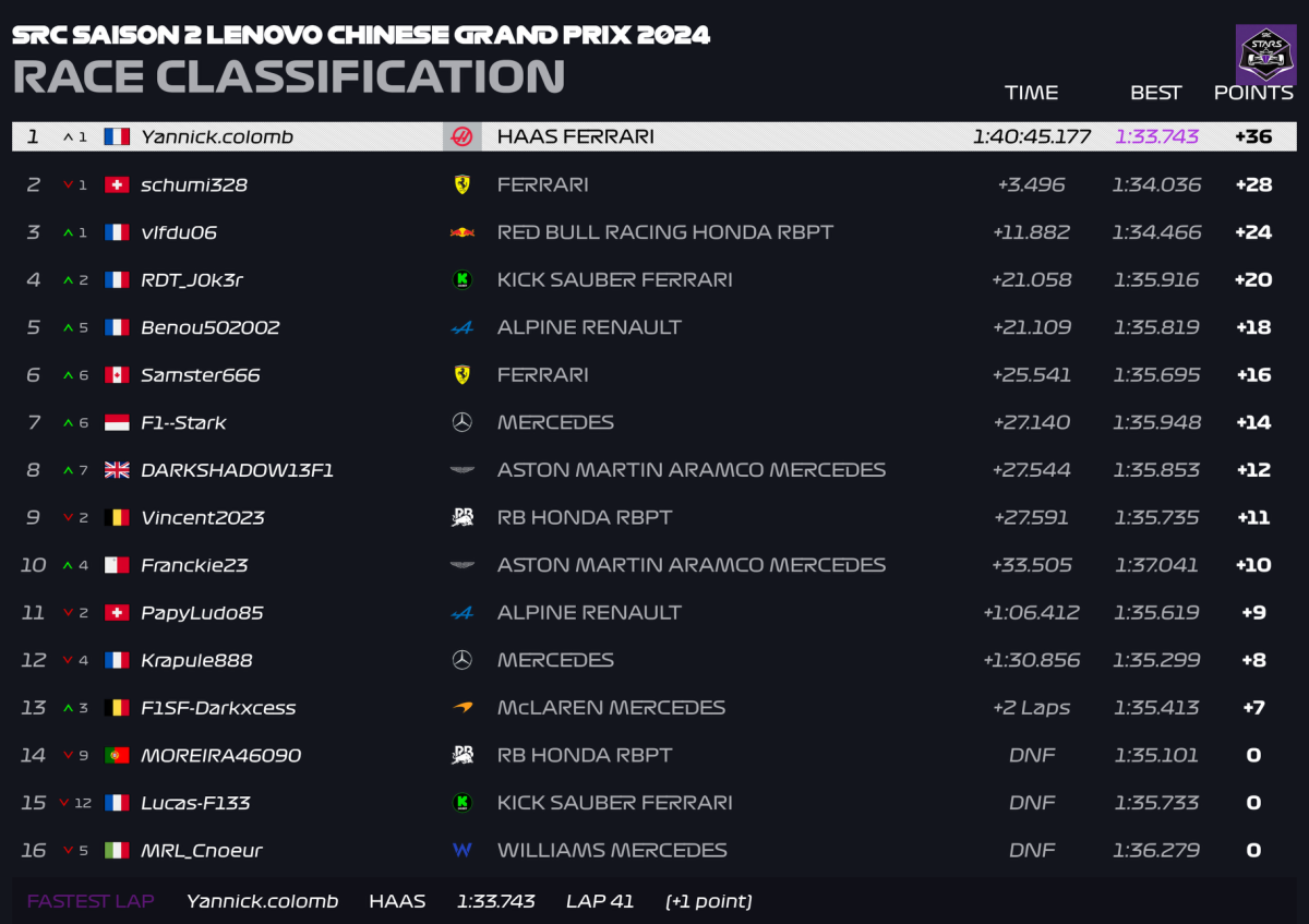 - Hier soir avait lieu la 5ème Manche de la Saison 2 de la SRC avec le GP de Shanghai 🇨🇳