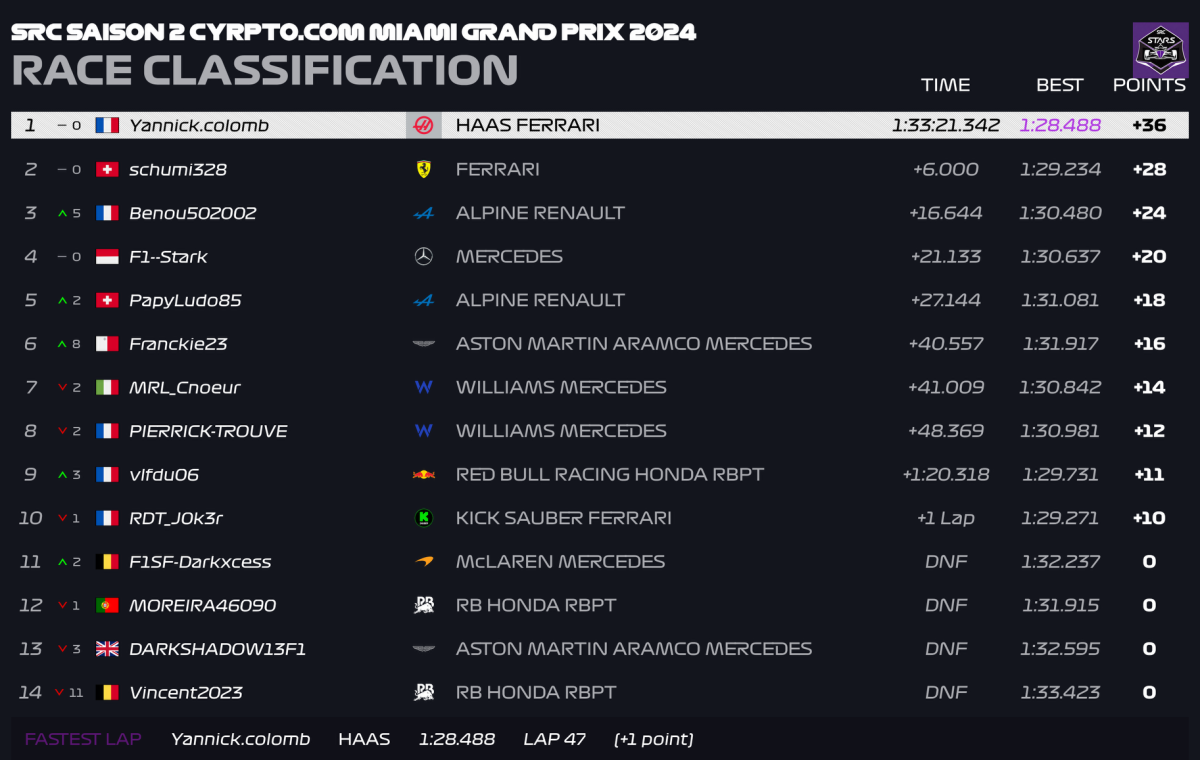 - Hier soir avait lieu la 6ème Manche de la Saison 2 de la SRC avec le GP de Miami 🇺🇸
