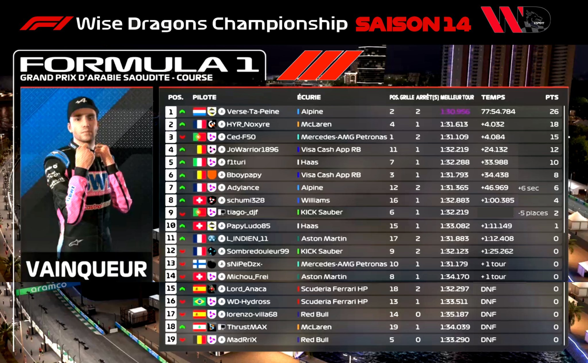 Hier soir avait lieu la 2ème Manche de la Saison 14 du Groupe F1 de la Wise Dragons avec le GP Djeddah 🇸🇦