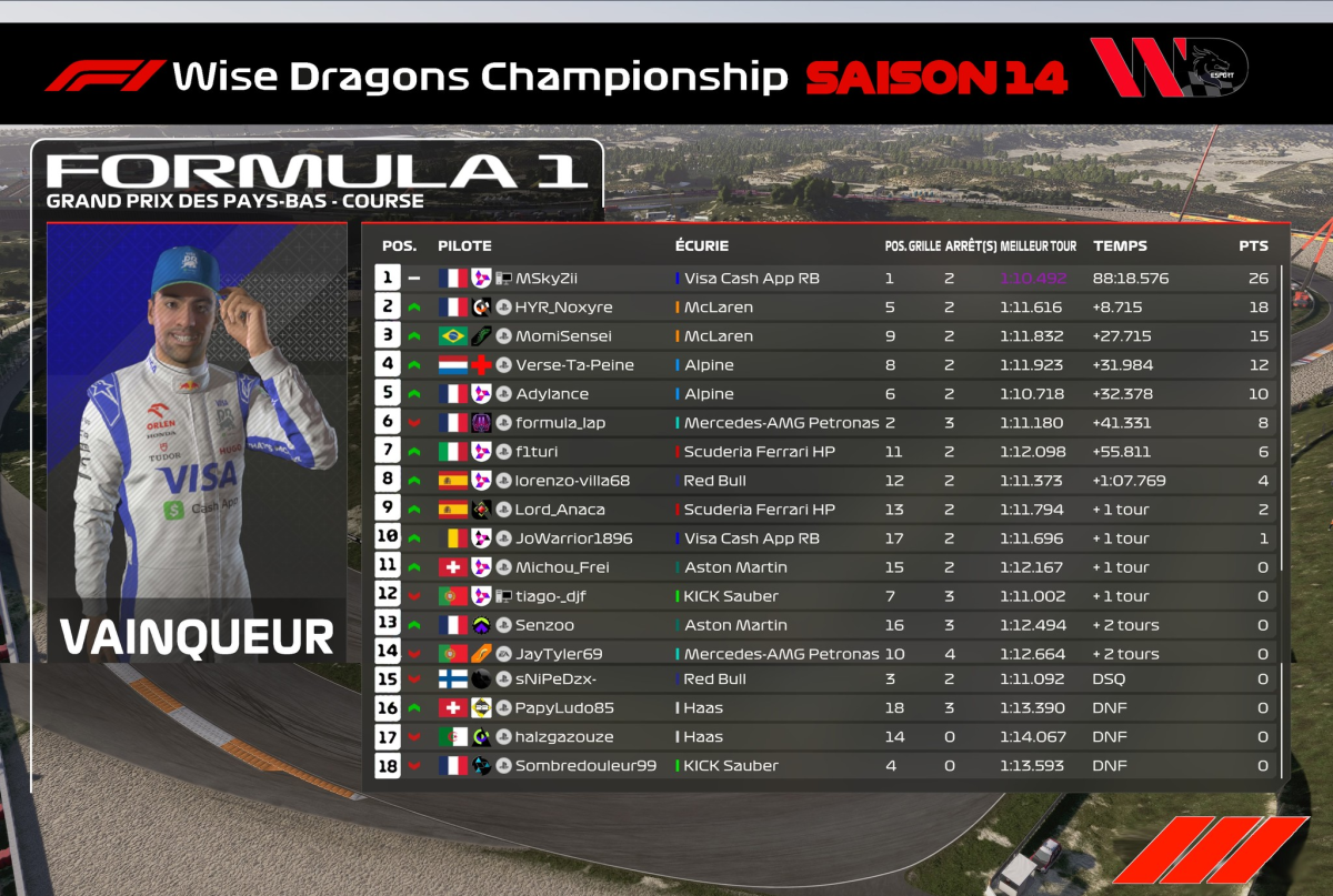 - Mercredi soir avait lieu la 14ème Manche de la Saison 14 du Groupe F1 de la Wise Dragons avec le GP de Zandvoort 🇳🇱