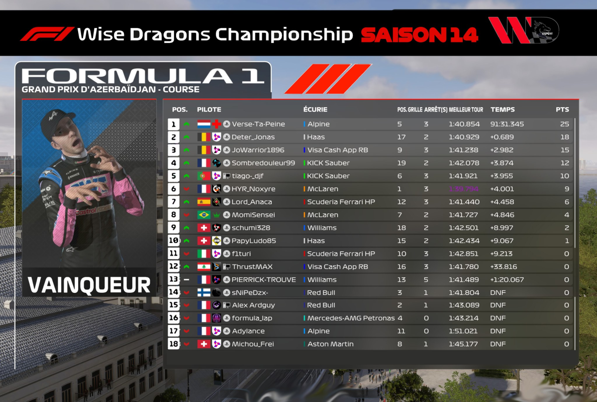 - Hier soir avait lieu la 16ème Manche de la Saison 14 du Groupe F1 de la Wise Dragons avec le GP de Baku 🇦🇿