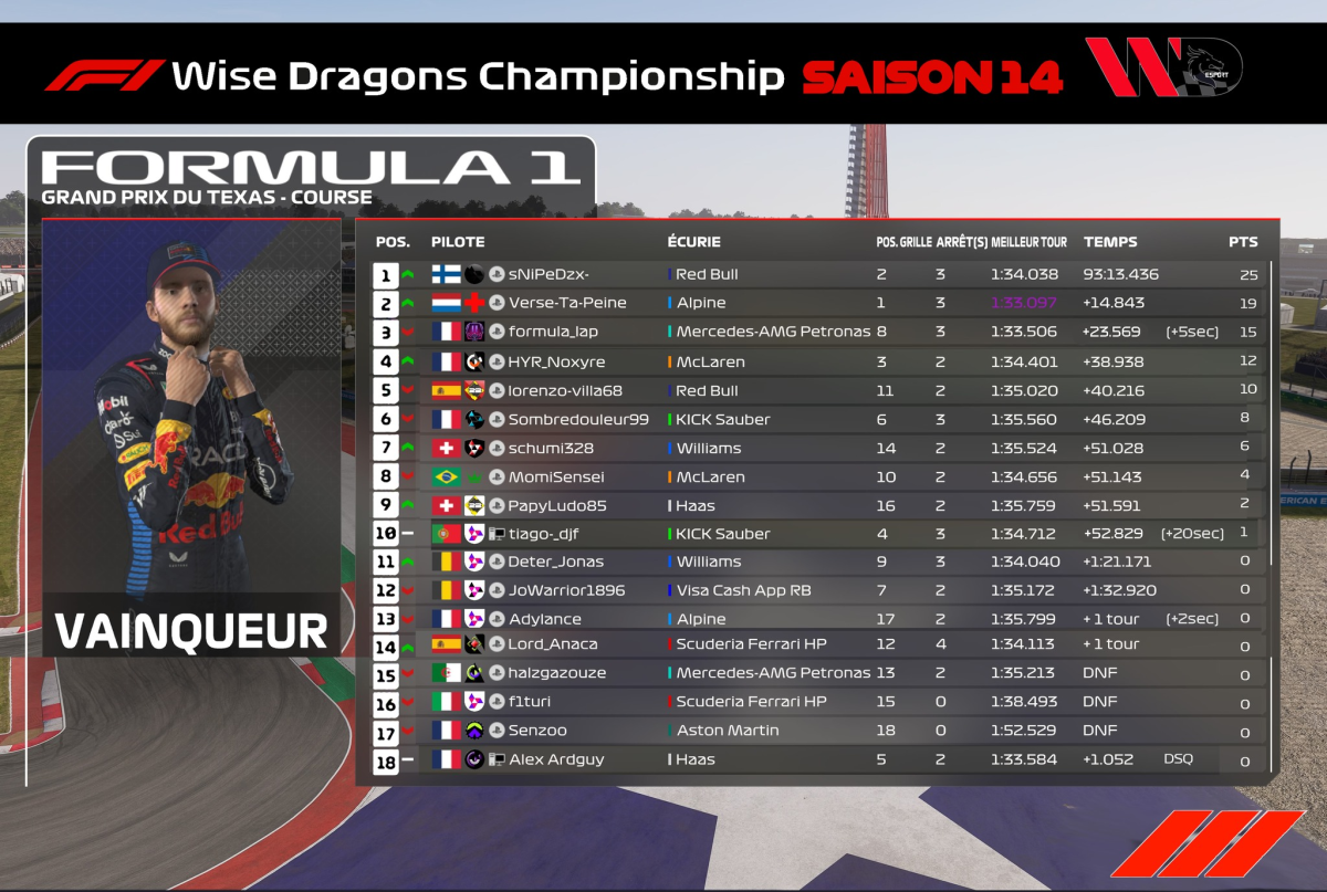 - Hier soir avait lieu la 18ème Manche de la Saison 14 du Groupe F1 de la Wise Dragons avec le GP d'Austin 🇺🇸