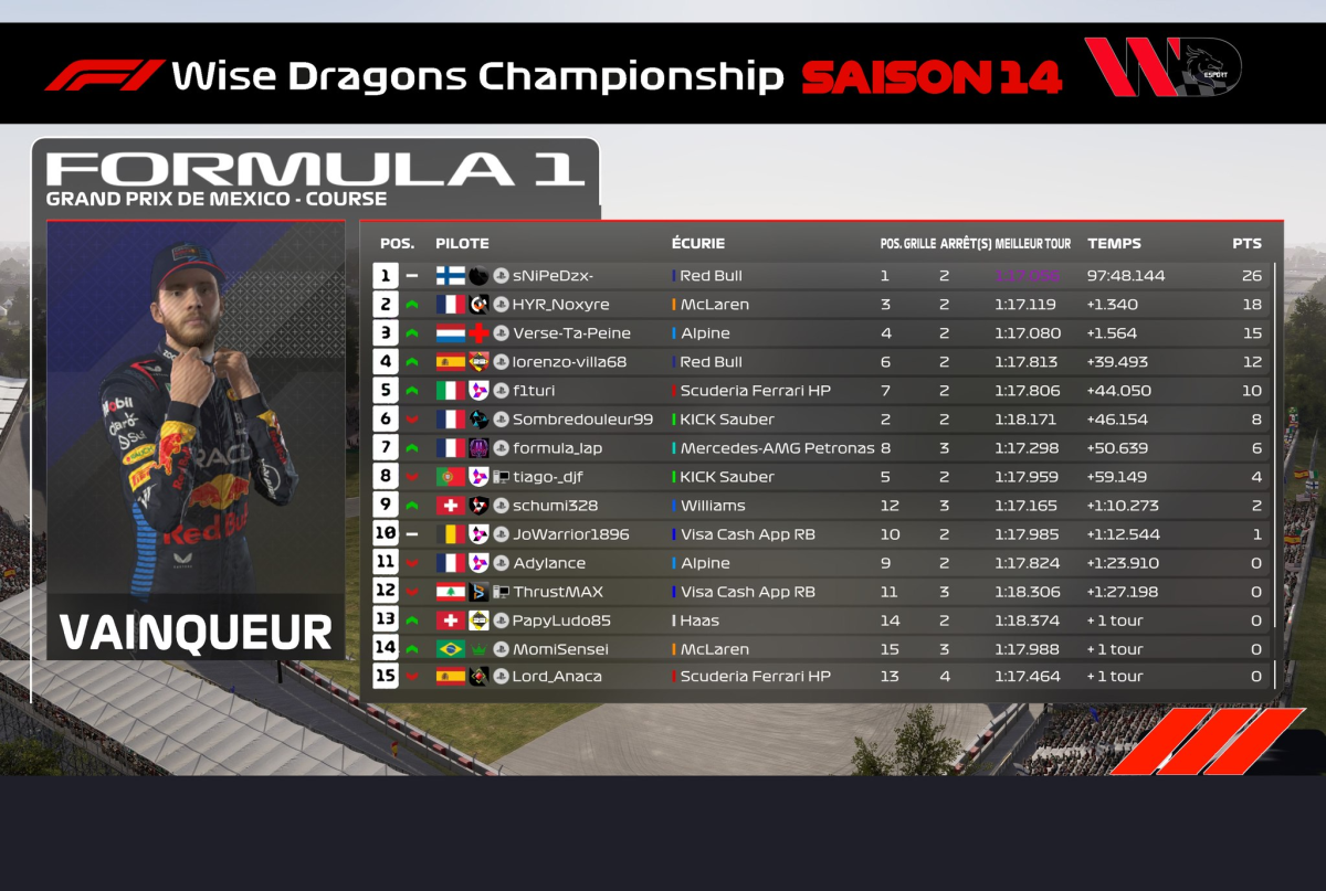 - Hier soir avait lieu la 19ème Manche de la Saison 14 du Groupe F1 de la Wise Dragons avec le GP de Mexico 🇲🇽