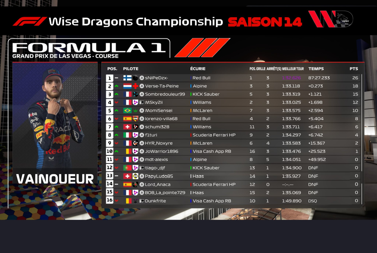 - Hier soir avait lieu la 21ème Manche de la Saison 14 du Groupe F1 de la Wise Dragons avec le GP de Las Vegas 🇺🇸