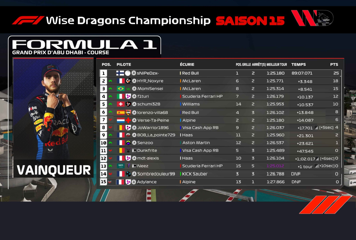 - Hier soir avait lieu la Finale, 22ème et dernière Manche de la Saison 14 du Groupe F1 de la Wise Dragons avec le GP d'Abu Dhabi 🇦🇪