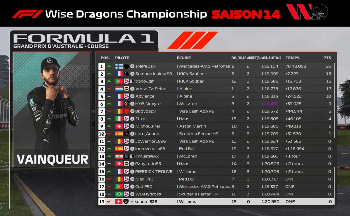Hier soir avait lieu la 3ème Manche de la Saison 14 du Groupe F1 de la Wise Dragons avec le GP d'Australie 🇦🇺