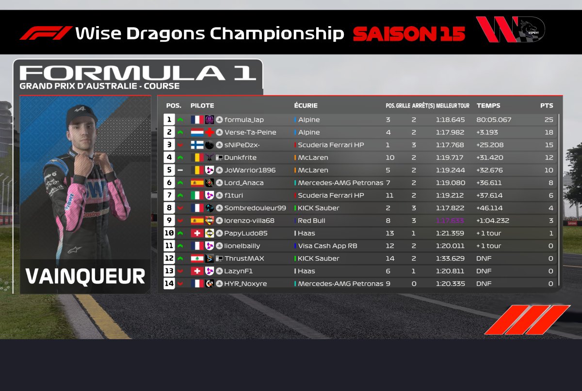 - Hier soir avait lieu la 2ème Manche du Groupe F1 de la Wise Dragons avec le GP de Melbourne 🇦🇺