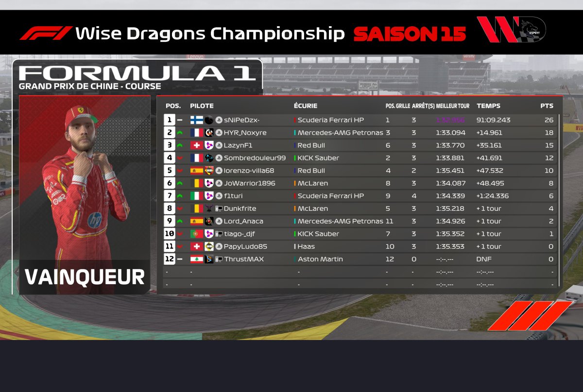 - Hier soir avait lieu la 4ème Manche du Groupe F1 de la Wise Dragons avec le GP de Shanghaï 🇨🇳