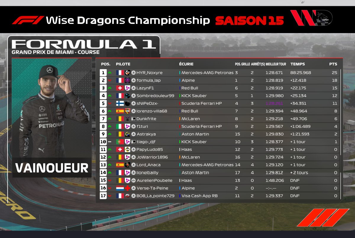 - Hier soir avait lieu la 5ème Manche du Groupe F1 de la Wise Dragons avec le GP de Miami 🇺🇸