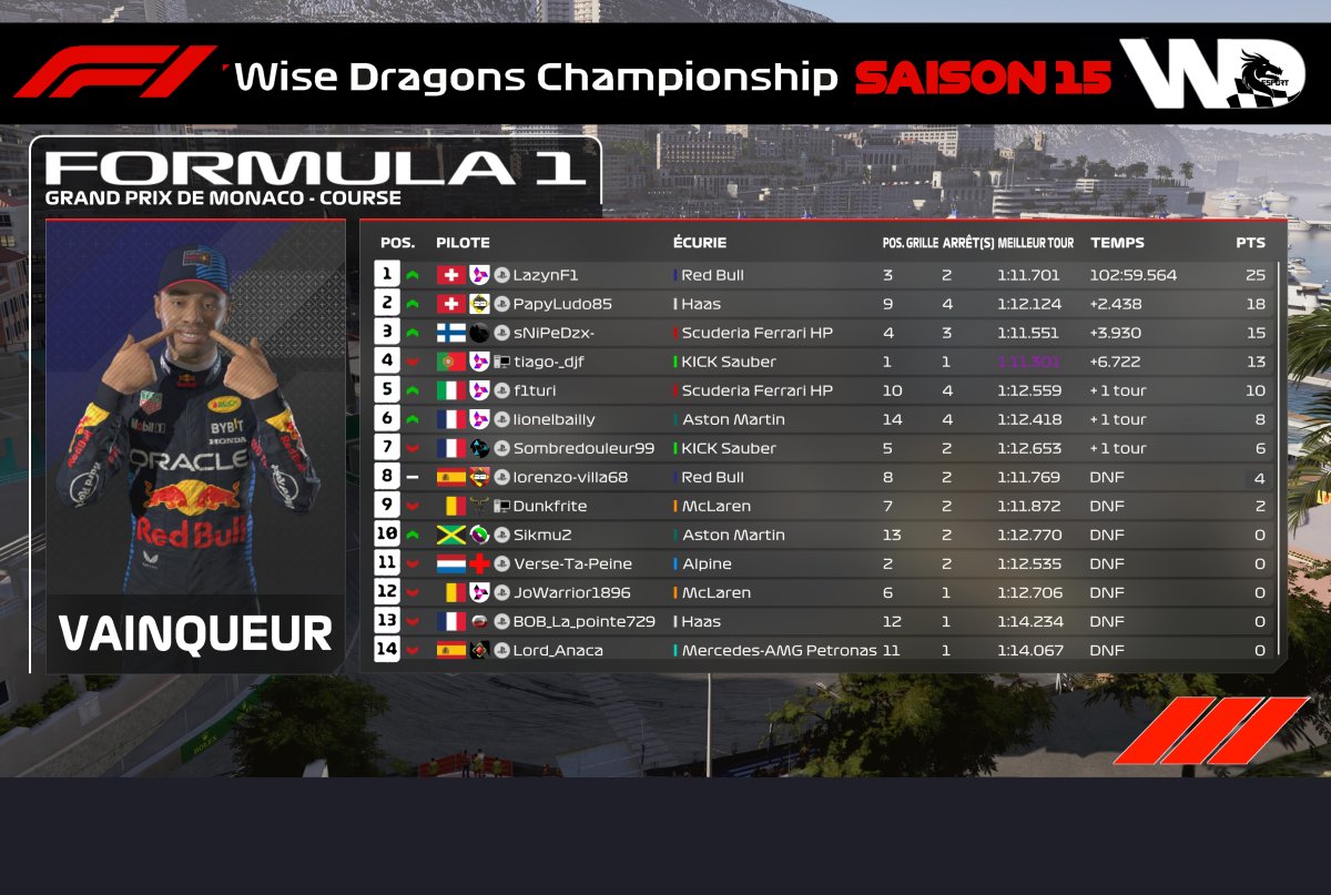 - Hier soir avait lieu la 7ème Manche du Groupe F1 de la Wise Dragons avec le GP de Monaco 🇲🇨