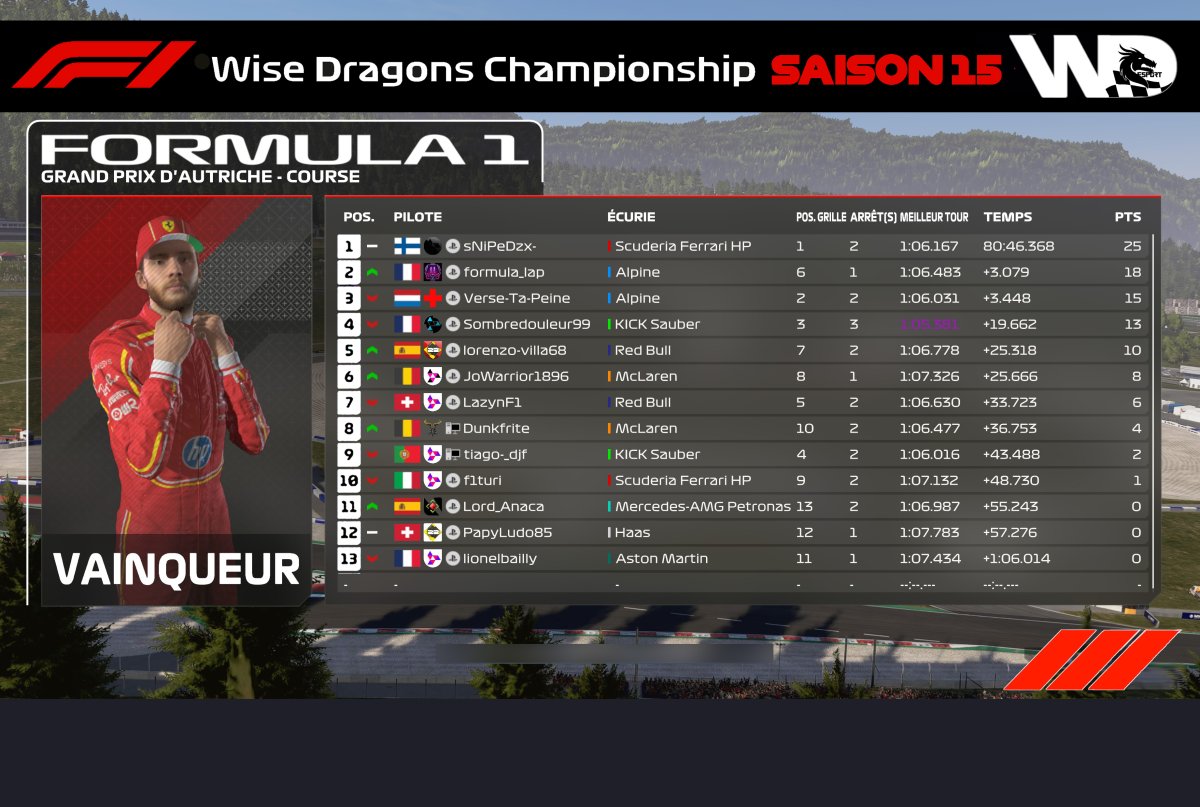 - Mercredi soir avait lieu la 10ème Manche du Groupe F1 de la Wise Dragons avec le GP du Red Bull Ring 🇦🇹