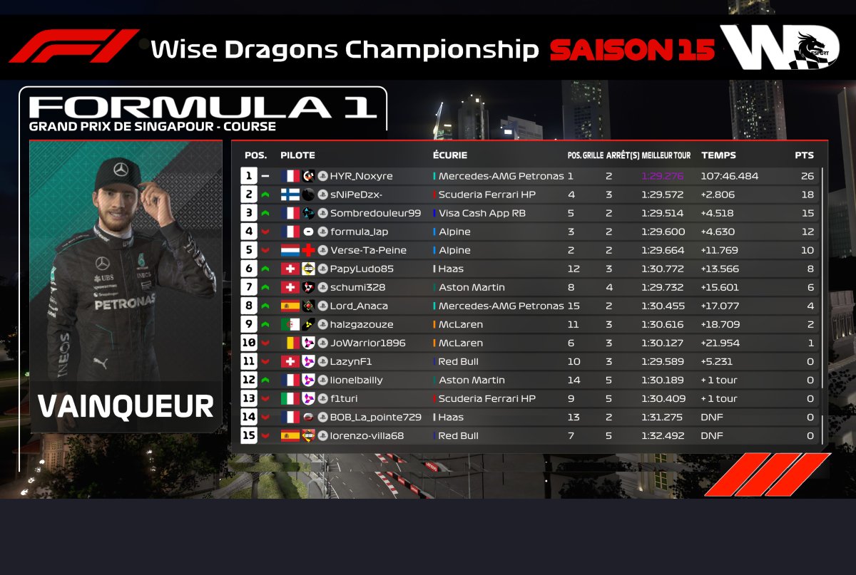 - Hier soir avait lieu la 16ème Manche du Groupe F1 de la Wise Dragons avec le GP de Singapour 🇸🇬