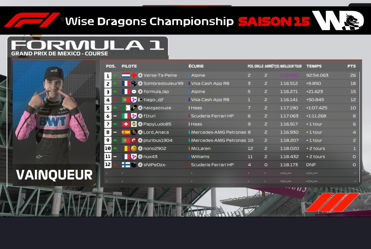 - Hier soir avait lieu la 18ème Manche du Groupe F1 de la Wise Dragons avec le GP du Mexique 🇲🇽