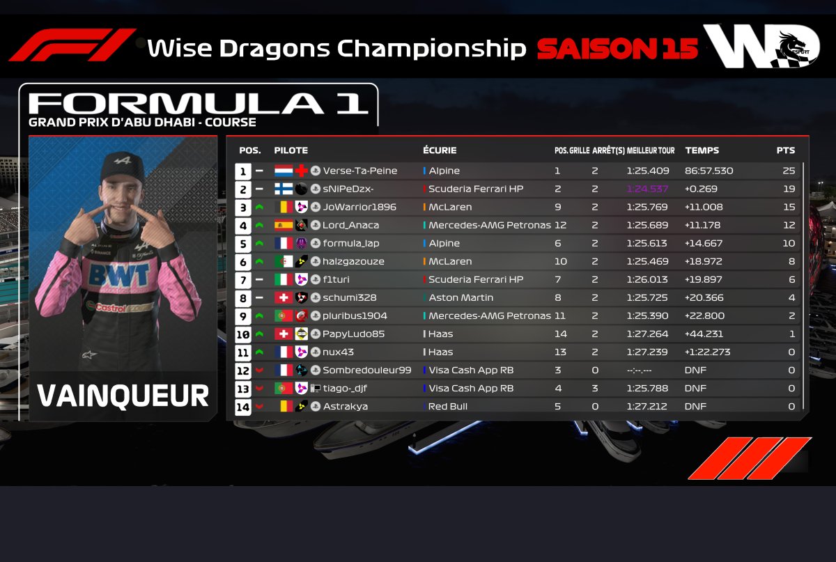 - Hier soir avait lieu la 21ème et dernière Manche du Groupe F1 de la Wise Dragons avec le GP d'Abu Dhabi 🇦🇪