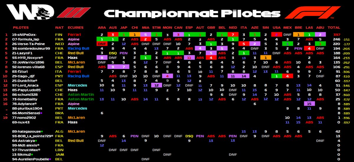 📈 Classement FINAL après 21 GP s/21 :