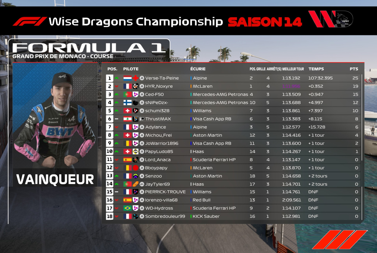 - Hier soir avait lieu la 8ème Manche de la Saison 14 du Groupe F1 de la Wise Dragons avec le GP Monégasque 🇲🇨