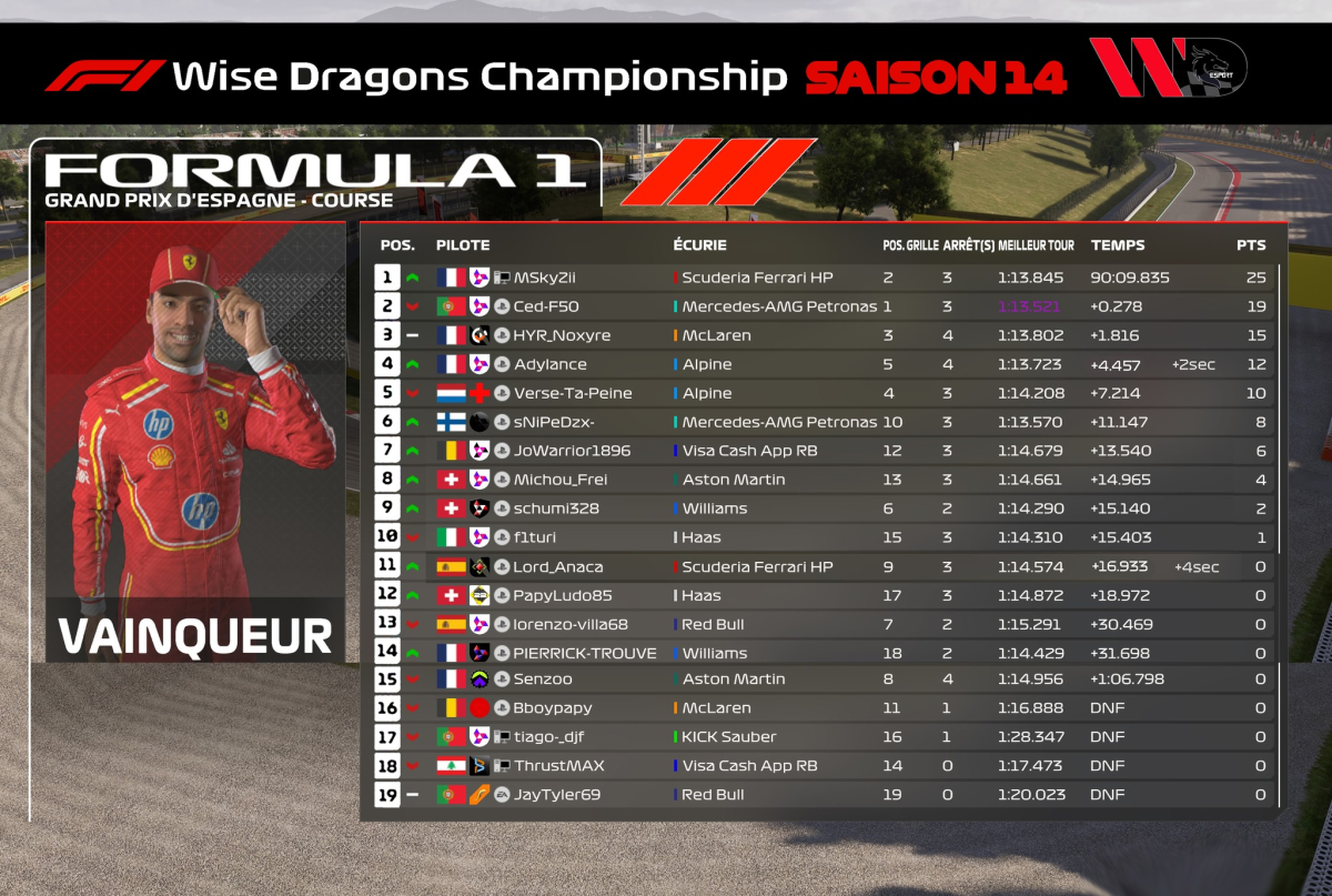 - Hier soir avait lieu la 10ème Manche de la Saison 14 du Groupe F1 de la Wise Dragons avec le GP de Barcelone 🇪🇸