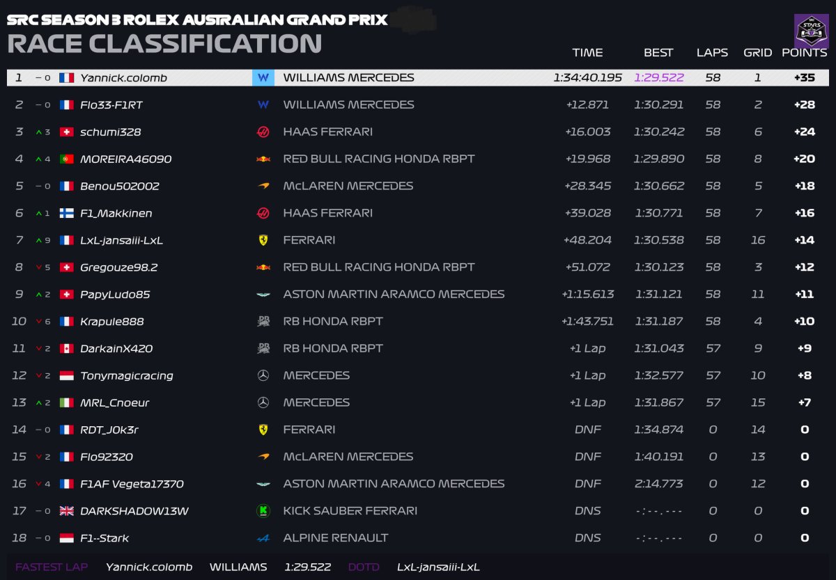 📑 Lundi soir avait lieu la 1ère Manche de cette nouvelle Saison 3 de la SRC avec le GP d'Australie 🇦🇺