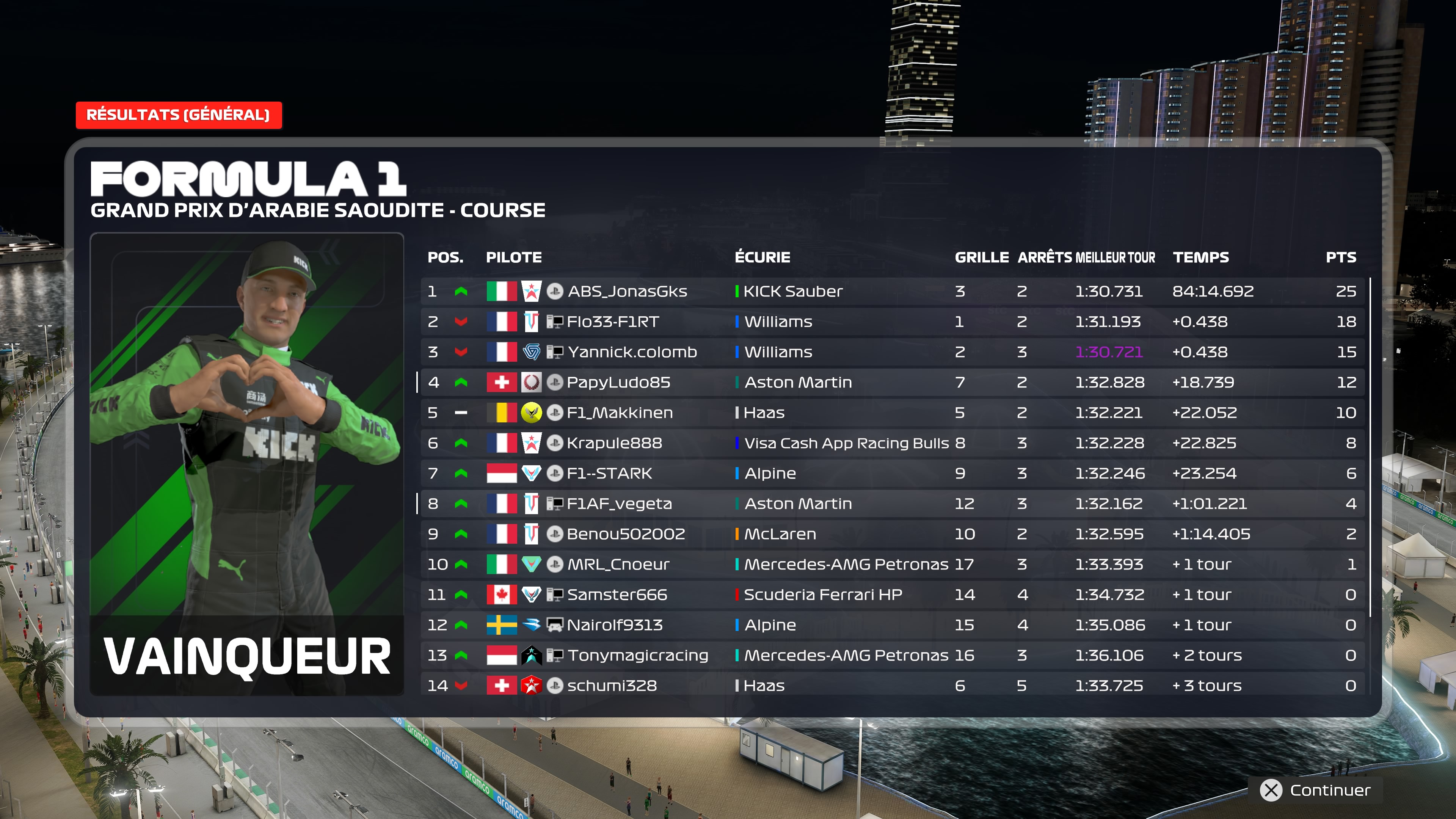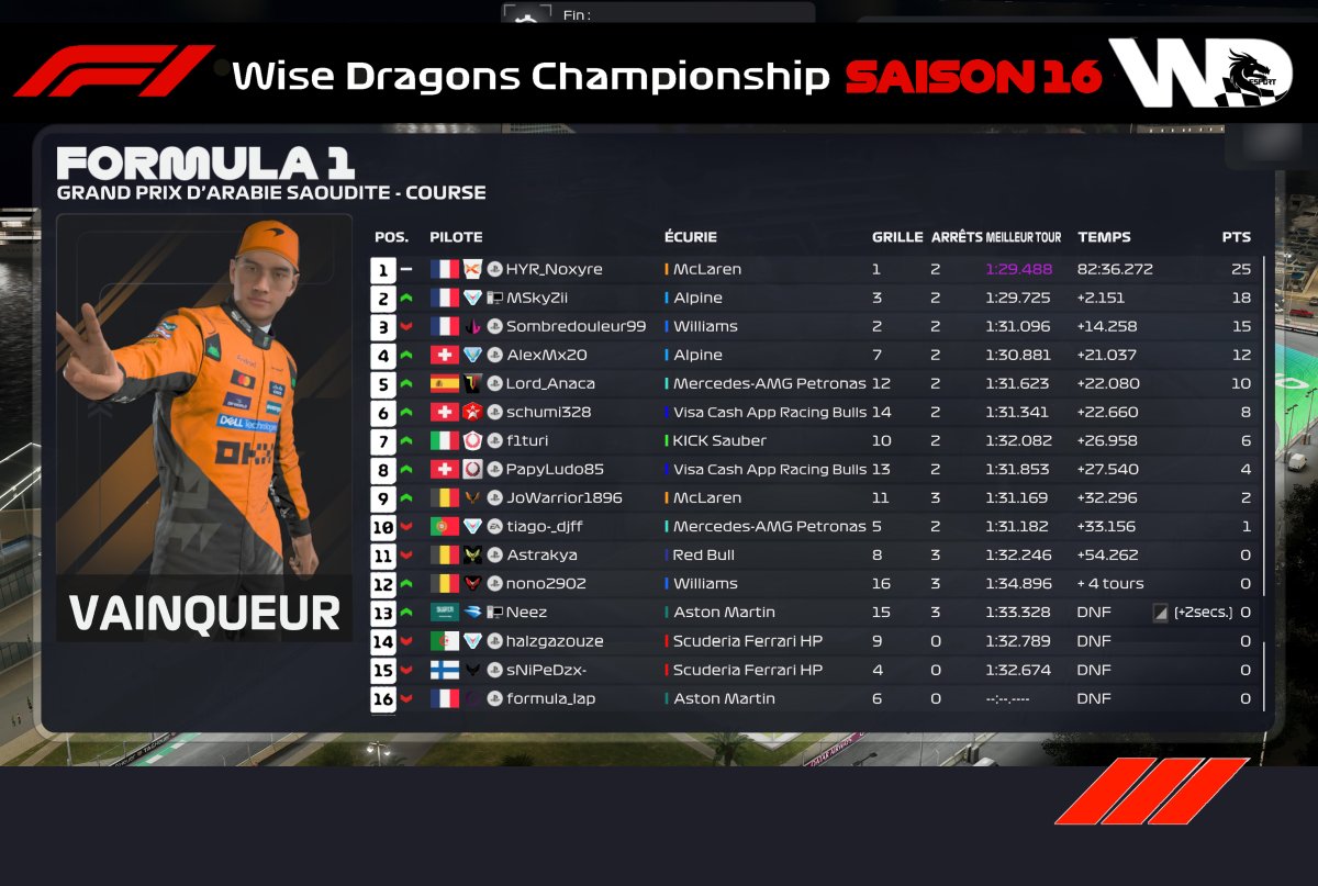 📑 Hier soir avait lieu la 5ème Manche de cette Saison 16 du Groupe F1 de la Wise Dragons avec le GP de Djeddah 🇸🇦