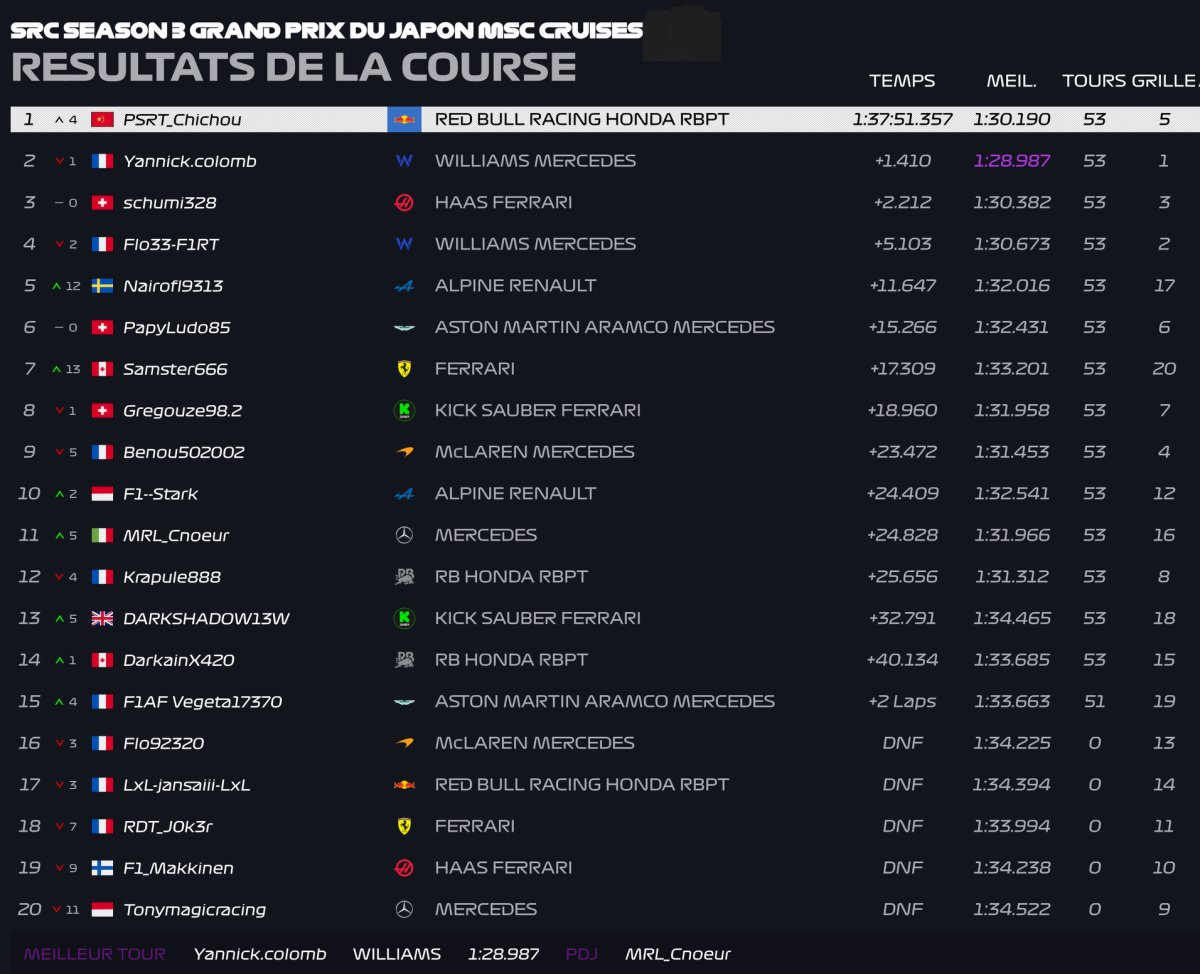 📑 Hier soir avait lieu la 3ème Manche de cette Saison 3 de la SRC avec le circuit de Suzuka et GP du Japon 🇯🇵