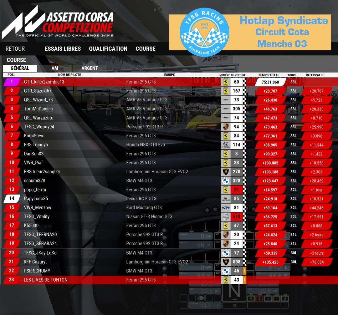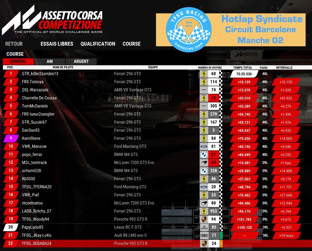 🚥 Résultats TFSG Championnat Hotlap Syndicate | Circuit Barcelone | Manche 2 🚥